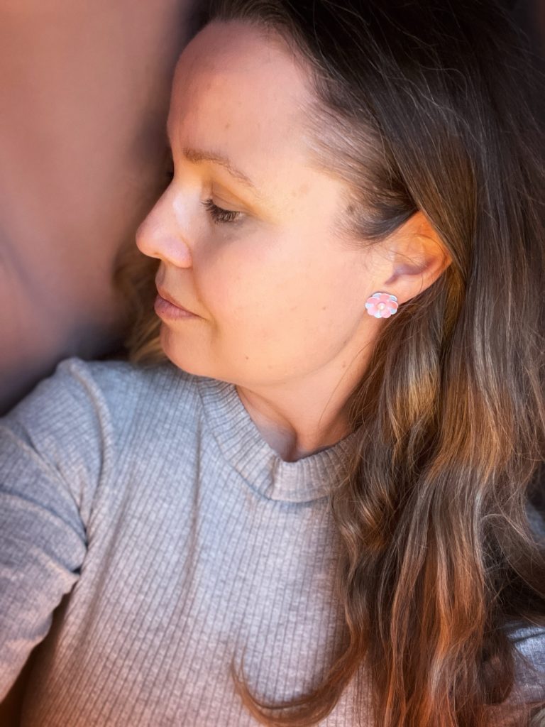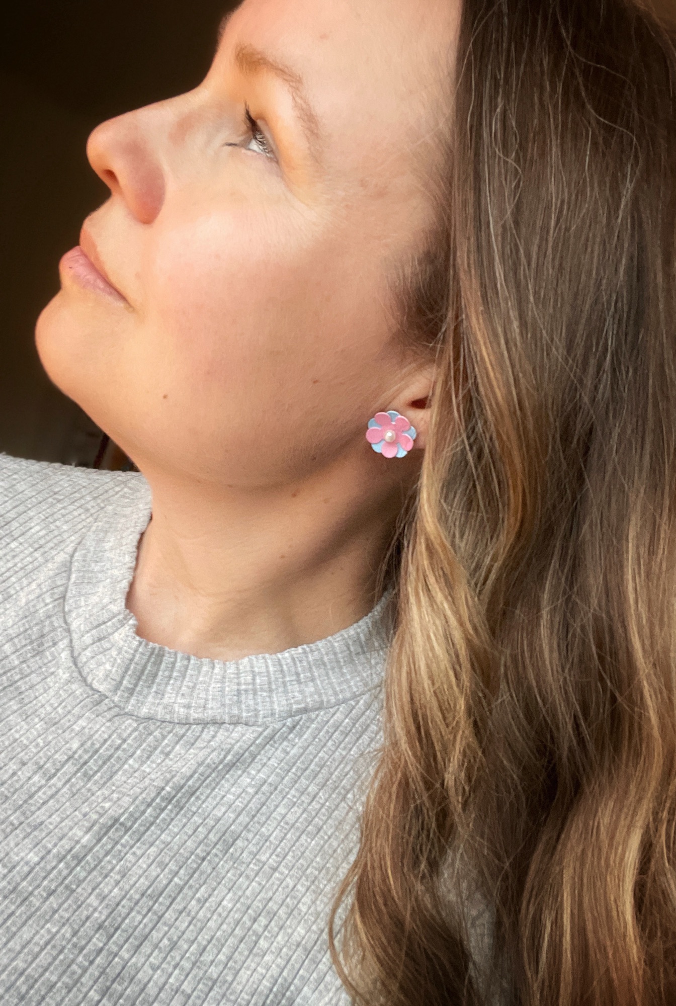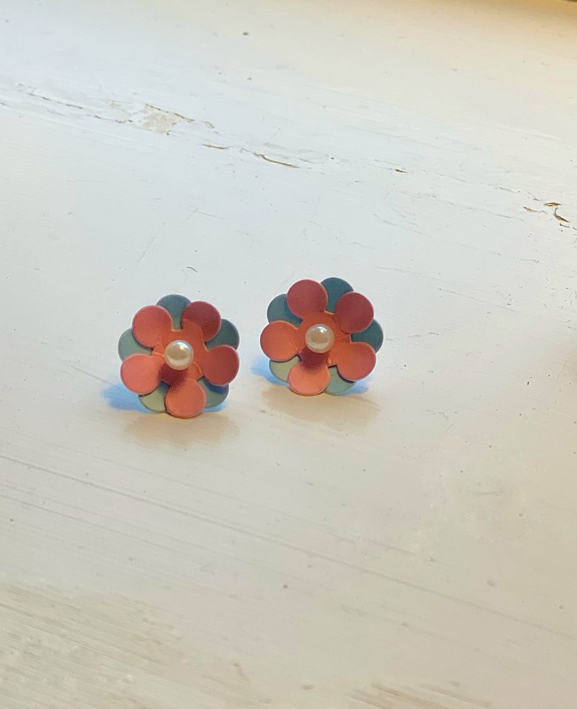 Jag köpte två vanliga majblommor med nål. Sedan tog jag bort nålarna och satte i två små pärlörhängen istället.