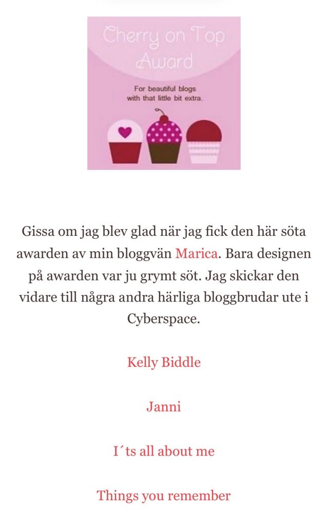 Åh de där awardsen man gav hade jag förträngt! Tack för att du påminnde mig 🙂